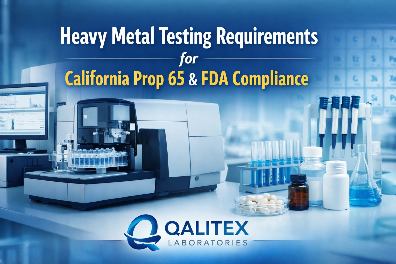 IRVINE, CA, UNITED STATES, March 19, 2026 /EINPresswire.com/ -- IRVINE, CA — Qalitex Laboratories, an ISO 17025-accredited third-party analytical testing laboratory specializing in ICP-MS heavy metal analysis, today outlined the critical testing requirements for dietary supplement brands, cosmetic companies, and Amazon FBA sellers marketing products in California under Proposition 65 and FDA guidance on elemental contaminants.Enacted in 1986 and administered by the California Office of Environmental Health Hazard Assessment (OEHHA), California Proposition 65 requires businesses to provide clear and reasonable warnings before exposing consumers to chemicals known to cause cancer or reproductive toxicity. The list now includes more than 900 substances—among them lead, arsenic, cadmium, and mercury, which may occur naturally in botanical ingredients and cosmetic raw materials.